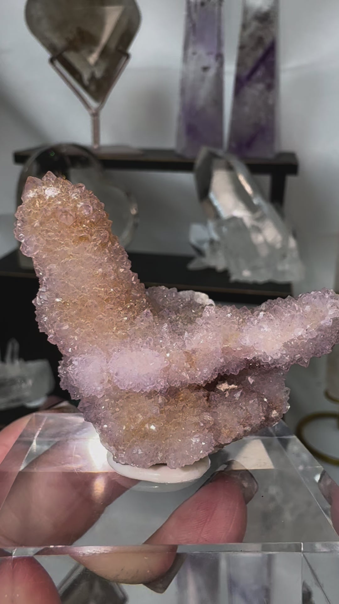 Learn the power of meditation with our Spirit Quartz Crystal. This beautiful cluster enhances harmony and clarity, promoting spiritual balance and inner peace. With its unique blend of amethyst and citrine, you'll experience increased energy and manifestation abilities. Perfect for those seeking a deeper connection with the universe.